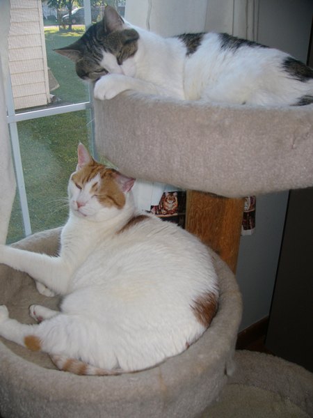How nice, sharing a cat tree and a window. Of course that would never happen here!