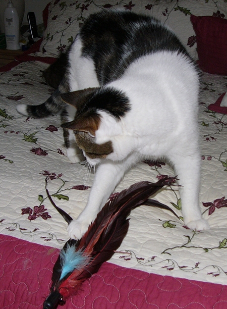 There's nothing like a brand new feather toy to tease the kitties with! It's so enticing when the feathers are all still intact.